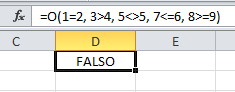 Si analizas con detenimiento cada una de las expresiones verás que todas son falsas y por lo tanto la función O devolverá el valor FALSO. Observa el resultado:
