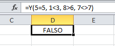 Ahora agregaré una cuarta expresión que será falsa: 7<>7. Observa cómo será suficiente para que la función Y devuelva el valor FALSO: